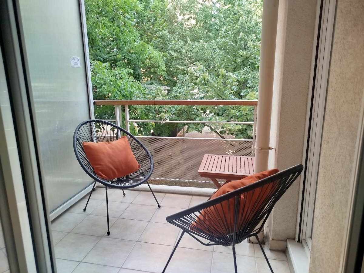 Vous séjournerez dans un grand studio type T1 de 27 m2 entièrement équipé, pouvant accueillir jusqu'à 3 personnes. Une grande terrasse donne sur un parc arboré. Situé au 2e étage (avec ascenseur) dans une résidence sécurisée et calme, le parking est gratuit. La proximité du centre ville (15 minutes à pied, 5 minutes en voiture, 5 minutes en bus) et des axes autoroutiers sont de véritables atouts. Vous bénéficierez des commerces à proximité (5 mn d'Intermarché, pharmacie) et des parcs arborés.