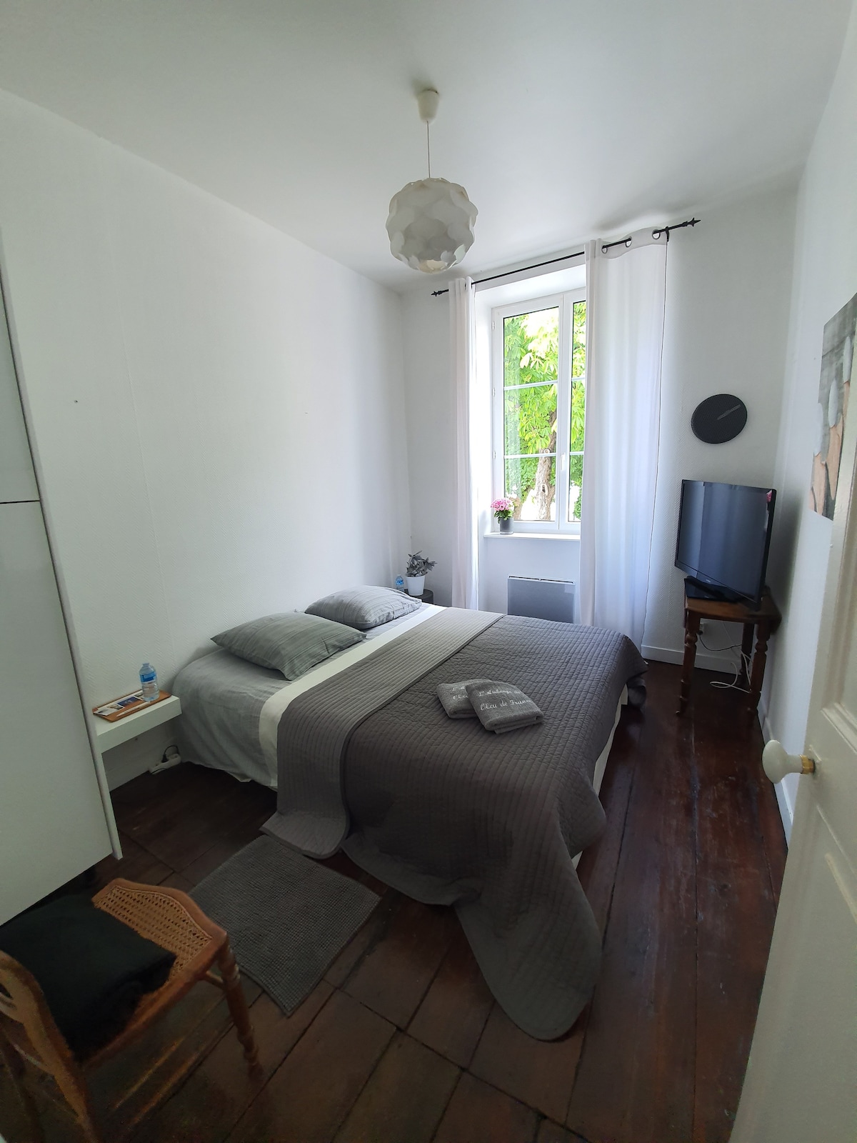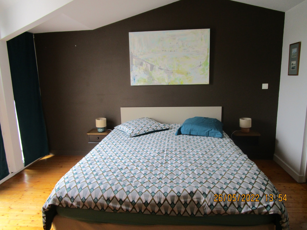 vous apprécierez le calme , votre chambre donne sur jardin et terrasse (lit de 180) (et sur demande un lit de 90 pour la 3eme personne dans la chambre attenante ), salle de bains ( douche italienne, vasque, et wc ) ; frigo, bouilloire, grille pains, mobilier extérieur petit déjeuner sur demande en supplément proximité de la plage et du centre ville , marché ouvert tous les jours Télétravail possible bureau attenant jolie petite station balnéaire proche îles Ré Oleron Aix