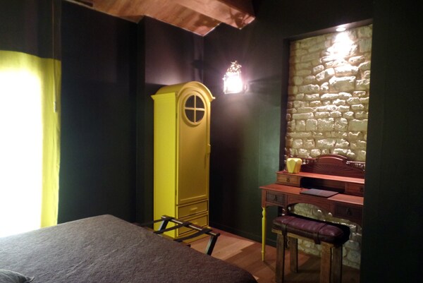 La chambre est située au 1er étage dans notre maison "La Novia", avec accès indépendant. La chambre dispose de prestations de qualité afin de prendre vos petits déjeuners et repas, table et 2 chaises, réfrigérateur d'hôtellerie, machine à café Nespresso, bouilloire, micro-ondes et vaisselle. TV, Canal+. Coffre fort. WI-FI gratuit. Attention !!! Les petits déjeuners ne sont pas proposés (boulangeries et Carrefour City à 100 m). Linge de toilette et de lit fournis. Lit (160) fait à l'arrivée.