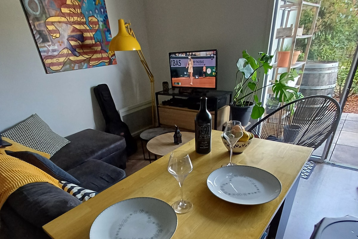 ☀️ Cozy Renovated Apartment with Sunny Terrace ☀️ 📍 Location: • Tasdon district, La Rochelle • Very quiet street & free parking in the street 🚶🏻 15-minute walk to: • SNCF train station / Aquarium • Old town & city center • Restaurants & bars 🏡 The Apartment: • Ground floor of a building with only 2 apartments • Fully renovated • Living area with a sofa bed • Open kitchen • Sleeping area with a double bed • Bathroom: shower & toilet • Sunny terrace with full privacy • Pet friendly