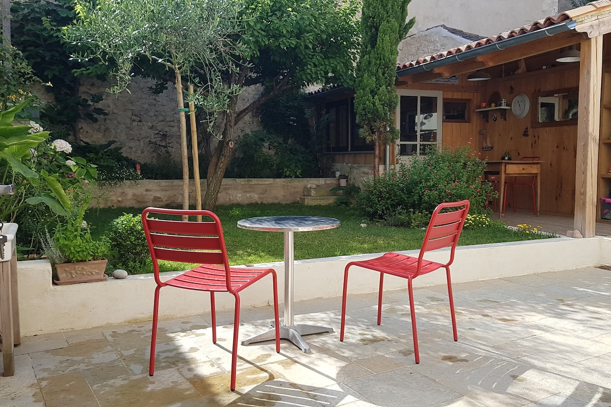 V I L L A G E O R G E S is a small "boutique hotel" style villa with a resolutely unique look where life is good. Exceptional location in La Genette, the most popular district of La Rochelle, just behind the Allées du Mail, very close to the beach of La Concurrence, the historic city center to drink a coffee or a glass of wine at the harbour. With its enclosed garden, terrace and private patio, it's the countryside in the city center. Quietness guaranteed. Free parking.