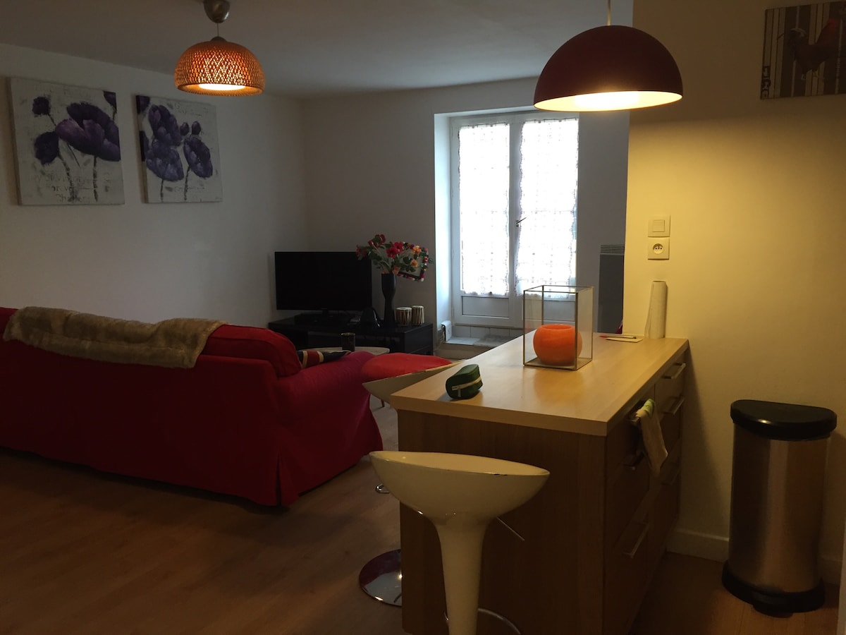 Charming studio apartment of 23m² on the 3rd floor of a historic building in Nantes. Living room with sofa bed, smart TV and Netflix. Fitted kitchen with oven, microwave and fridge. Shower room with WC and washing machine. Located in the heart of the city (Bouffay and Commerce districts), close to shops, restaurants and major tourist attractions.