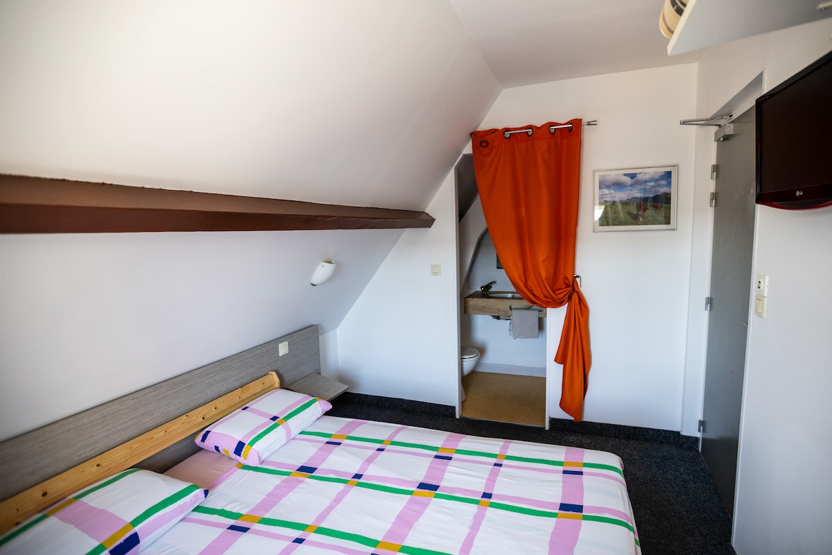 Whether you're travelling solo or as a couple, the 11m² Eklo Compact room offers you all the comfort you need in a perfectly optimised space. The best value for money at Eklo. A real cocoon designed with the environment in mind! Features: soft duvet, quality bedding by 100% French brand Merinos, bathroom with separate shower, toilet, mirror and washbasin, organic shower gel/shampoo and towels provided, television, small work desk, clothes hooks and electric roller shutter, individual heating.
