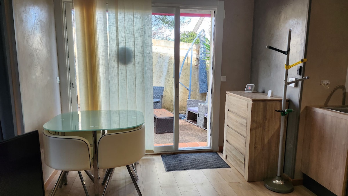 Petite maison situé sur Calvisson, Non loin de la plage qui est à 25min (Grau du roi, Aiguës -mortes, la Grande motte) également à 30min de Nîmes et de Montpellier. Vous pourrez profiter de la résidence qui dispose d’une piscine extérieur et une piscine intérieur, une garrigue, d’un terrain de tennis, table de ping-pong et restaurant/ bar. Des animations pour enfants et adultes sont prévu également.