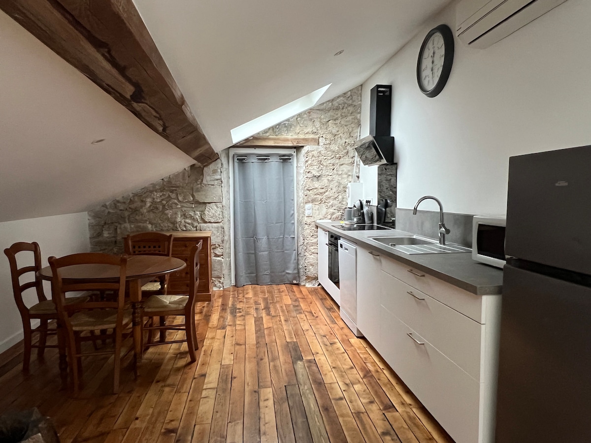 Maison d'hôte indépendante au milieu d'un jardin de roses, lieu très calme et dépaysant en centre ville. L'ensemble sur 2 étages fait 40 m2. Au rdc, une cuisine, salle à manger avec cheminée à bois. A l'étage, une chambre, un lit confortable de deux personnes (180/200) et une salle de bain.