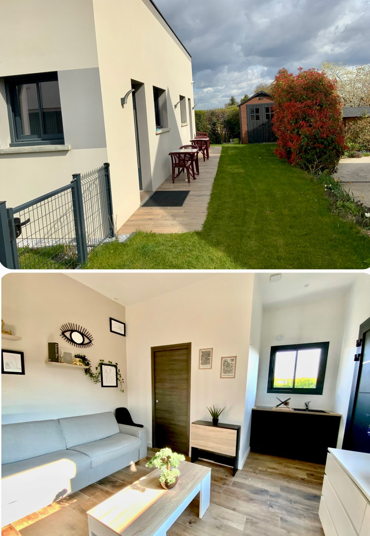 Maison indépendante mais mitoyenne à la mienne avec jardin commun. Beaux volumes et lumière. Décoration originale. Deux lits simples et un canapé convertible dans l'autre pièce. Idéal pour les familles. Discover Reims and stay in this beautiful private house with a contemporary decor. Enjoy the spacious and bright rooms of the house and its quietness. Very safe and quiet neighbourhood. Includes the provision of linen and towels. Free parking Easy access to Reims. French, english spoken
