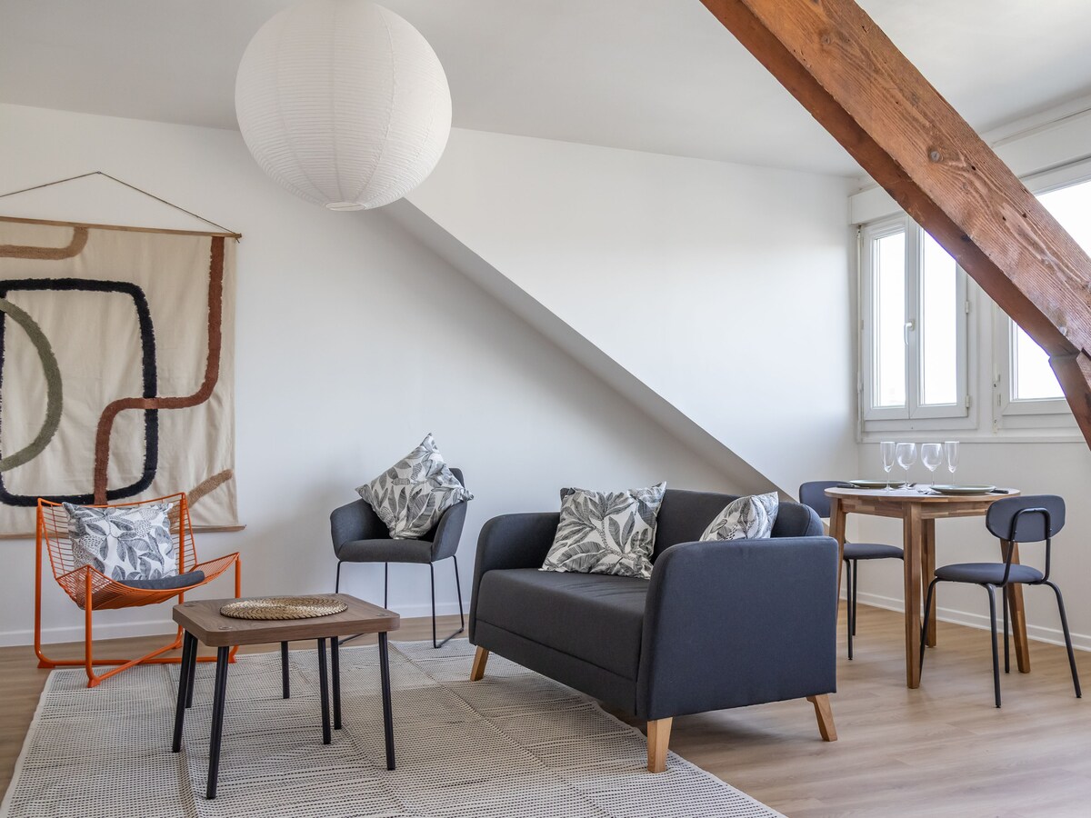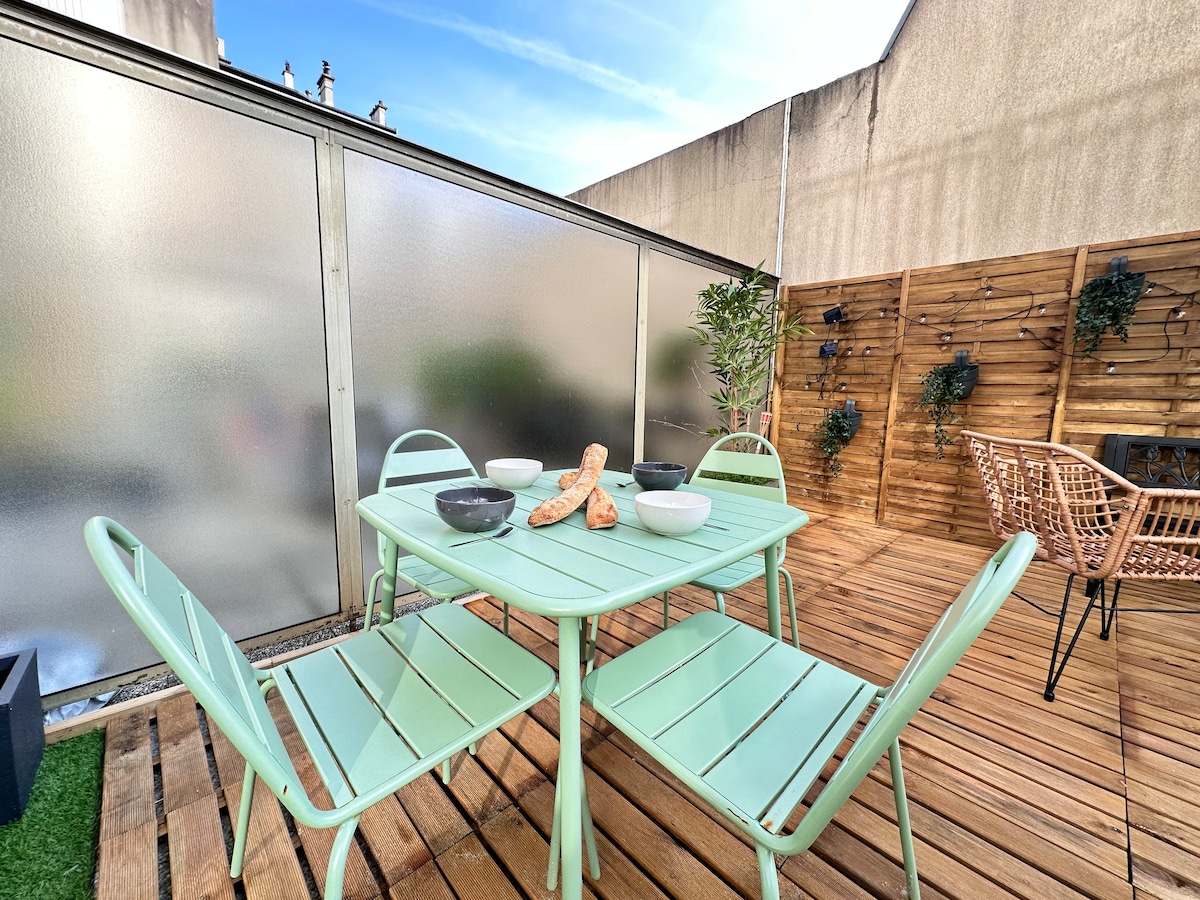 Découvrez ce magnifique appartement de 50m2 "le Clos Grandval", conçu comme une suite d’hôtel et bénéficiant d’une très belle terrasse privée de 10m2 situé à moins de 15 minutes à pied de la Cathédrale de Reims et des prestigieuses maisons de Champagne (Taittinger, Pommery, Mumm..). L'appartement, entièrement rénové, offre tout le confort nécessaire, y compris pour les familles voyageant avec un bébé ou un enfant. Vivez une expérience unique et authentique en plein cœur de la cité des Sacres !