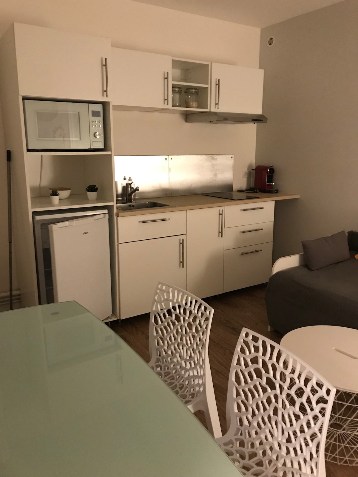 Studio 20 m2 à 5 minutes de l hyper centre ville de Reims ,2 minutes de la gare Reims centre en voiture, 10 minutes à pied de la gare Reims centre, à 800 m du tramway, proche des commerces et à 50 m de l’Arena ,il y a plein de place de parking payante devant le studio, et des places de parking handicapé payant à l intérieur de l immeuble.Laverie disponible ( demander un jeton à l’accueil)wifi gratuit en se connectant au portail internet.