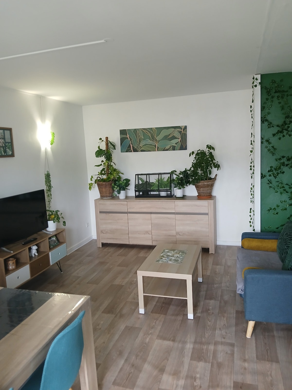 Appartement centre-ville facilité de stationnement et gratuit petite terrasse attenante appartement très fonctionnel vu sur cour et jardin premier étage douche et wc séparés lave-vaisselle cuisine équipée lit mezzanine 2 places et clic-clac proximité des transports en commun et du boulevard urbain