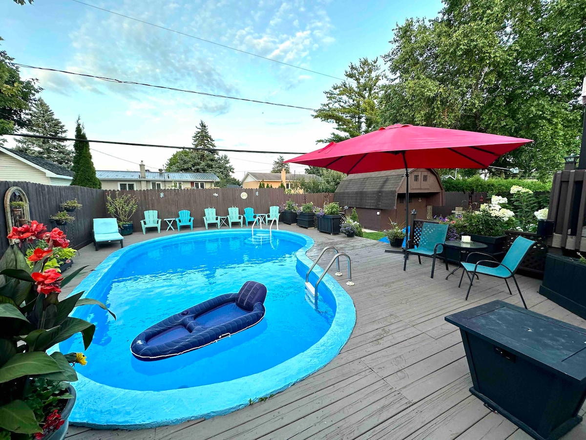 Relax in this truly Insta-worthy country house. Art meets nature with 70s boho vibes. Sleeps 8. Fully equipped kitchen, large open plan w/ 2 living rooms & wood fireplace (wood complimentary). Surround yourself with nature in comfort. Screened outdoor living/dining room with outdoor heaters. Large yard with BBQ & firepit. Wifi (Fibre Op), Smart TVs (w/Netflix, etc), board games, etc Less than 1 min drive to Mt. Cascades ski hill & water park. 10 min drive to Gatineau river public park.