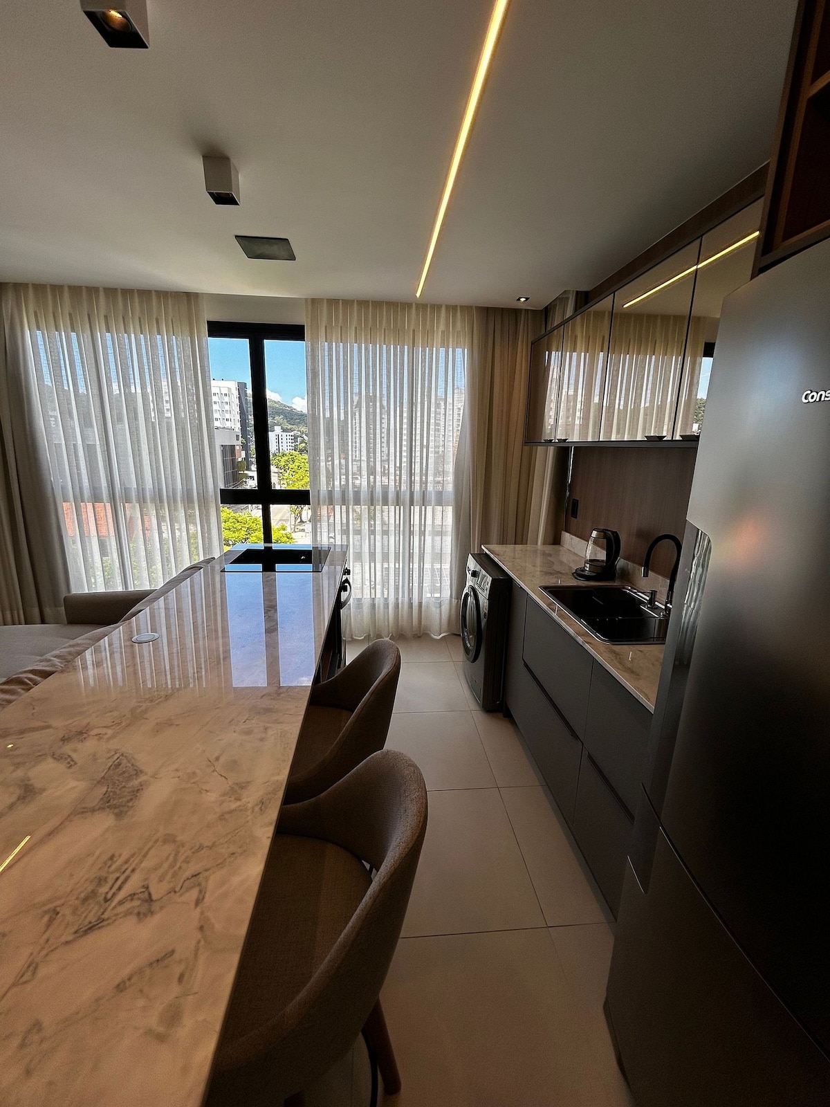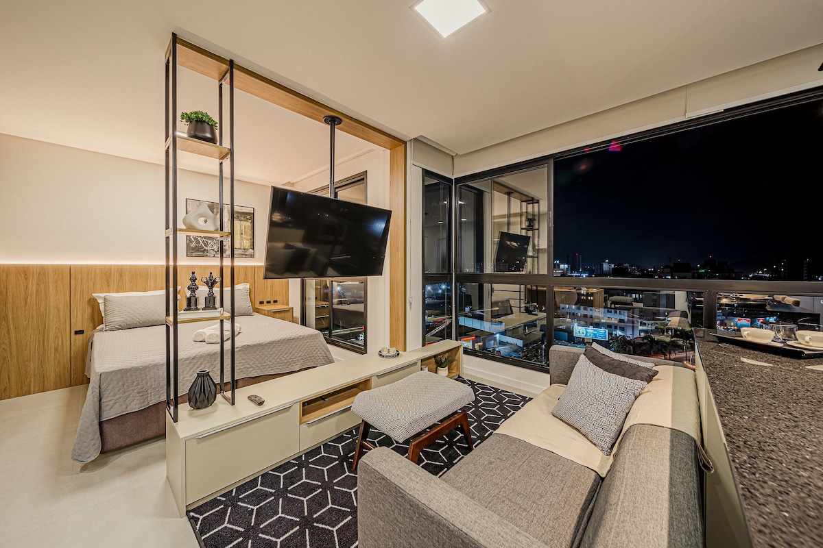 Studio novo, completo, no melhor bairro de Joinville (Centro / America). Tenha o conforto de um hotel compra privacidade e conforto de um apartamento. Próximo aos melhores supermercados, restaurantes, centros de evento. Tudo podendo ser feito a pé ou a poucos minutos de carro. Ideal, para lazer, turismo ou negócios.