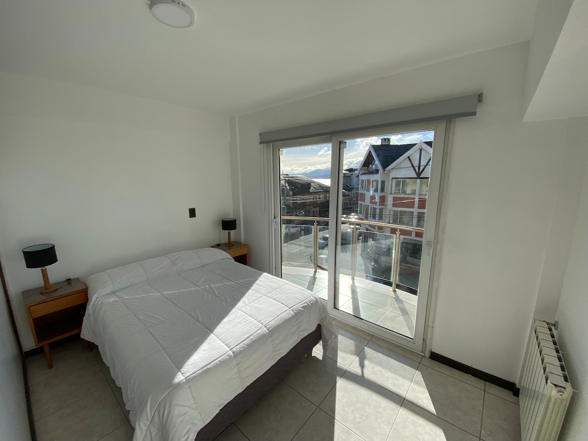 ! Departamento con inmejorable ubicacion a pasos de Cento Civico.Amplio y luminoso, preciosas vistas al Lago Manuel Huapi.Muy fácil acceso. Habitación con cama matrimonial y balcon con preciosas vistas, baño completo con bañera , cocina completa, living comedor Si eres un nómada digital, teletrabajas y necesitas buena velocidad de internet , el depto cuenta con fibra óptica y una velocidad de 330 megas