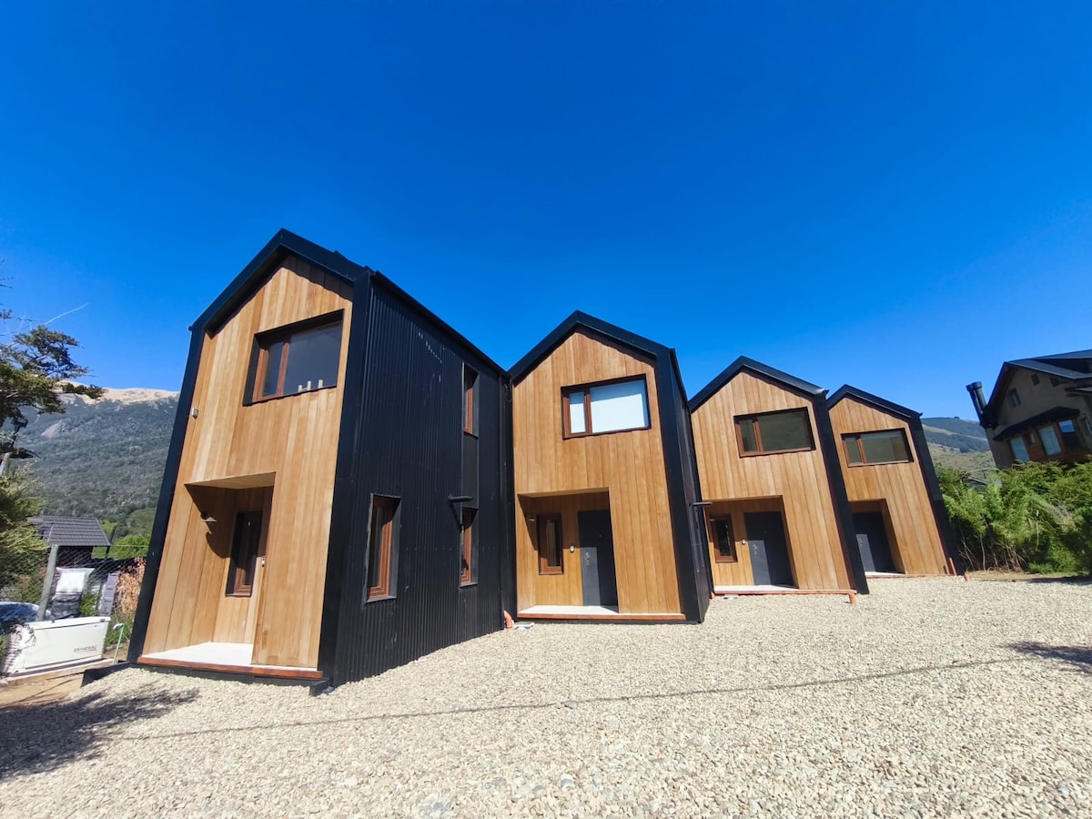 A unas 15 cuadras del centro, en la ladera de la montaña, una acogedora y relajada casa de familia. Esta cabaña luminosa ofrece una vista panorámica a través de sus amplios ventanales y la posibilidad de disfrutar de un buen fuego. Tiene su cocina y living integrada en un espacio tipo loft y una habitacion con una cama doble y otra con 2 camas singles en el piso superior. La casa está equipada con todo lo necesario para tener una cómoda estadía. Ideal tanto para una pareja, como para una familia de 4.