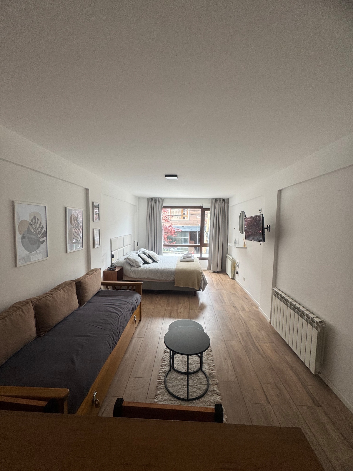 Enjoy Bariloche from a bright apartment with balcony and views of Lake Nahuel Huapi. Just 3 blocks from the Civic Center, on a quiet street, ideal for resting while staying close to everything. One bedroom, one bathroom, full kitchen and cozy living room. Sleeps 4 with a double bed and two single bunk beds. Perfect for couples, families or friends to explore the city and relax watching the sunset from the balcony.