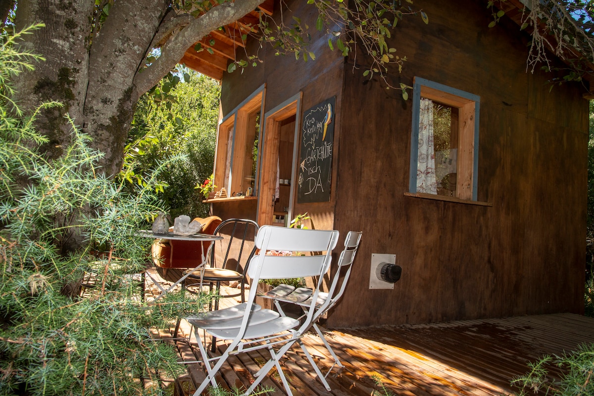 The "Gartehütte", is a tiny (17sqm), cozy garden cottage. 10.5 km from downtown. Ideal for couples or singles. It's located on a quiet neighborhood with lots of hiking and biking trails, the beach is only 400 m away on the shores of Lago Nahuel Huapi, as well as breweries, restaurants and shops nearby.