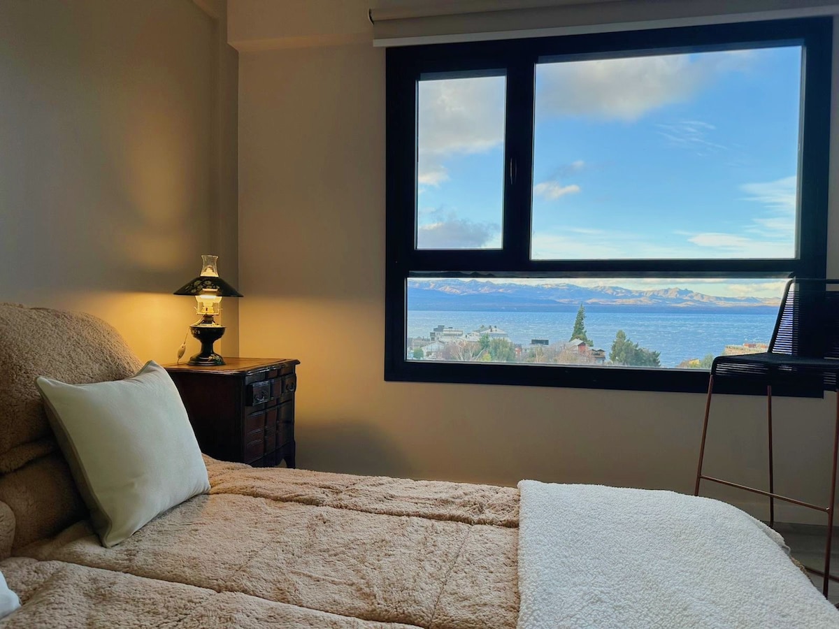 Disfrutá de la calidez de este alojamiento tranquilo y céntrico. La decoración del dpto. es estilo ecléctico con sencillos toques de modernidad. Con una vista increíble al Lago Nahuel Huapi y a las montañas, podrán admirar el amanecer y el atardecer. A pocos pasos del edificio encontrarás supermercado, verdulería, farmacia, lavadero, casas de comidas, cafés, cervecerías, hospital Privado, guarda equipajes, gimnasio, Paradas de bus de línea en la esquina. Estarán a 6 cuadras del Centro Cívico.