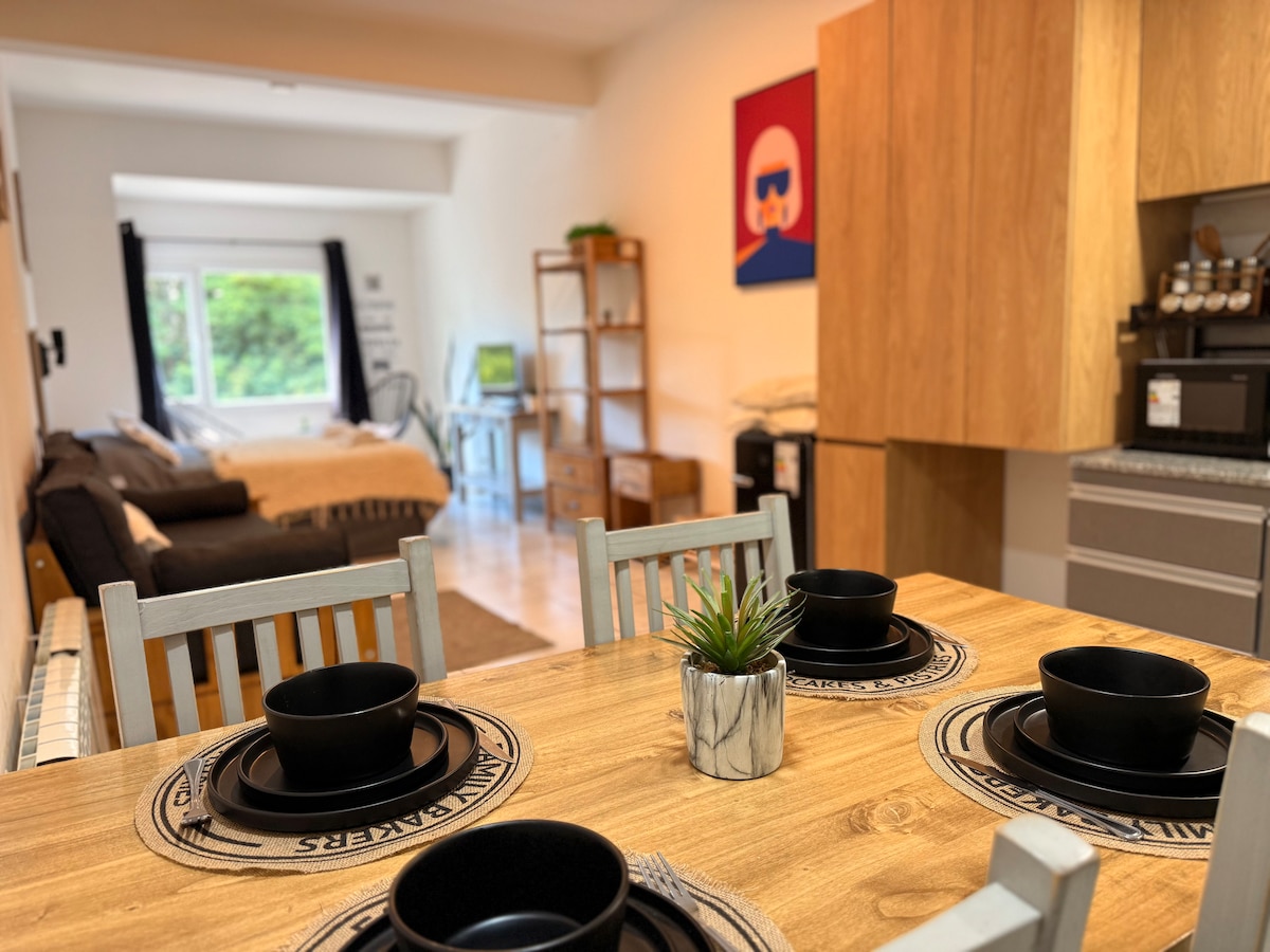 Enjoy best restaurants and chocolate stores, food delivery, from these quiet and well perfectly located appartment, north view to the Nahuel Huapi lake, in best "parrilla zone" in the city, next to Boliche de Alberto, Hertz and Localiza, Centro Civico, taxis, supermarket. You have Kitchenette, small fridge, microwave. Excellent location!. New WIFI highspeed 200 MB. Auto check in available!!
