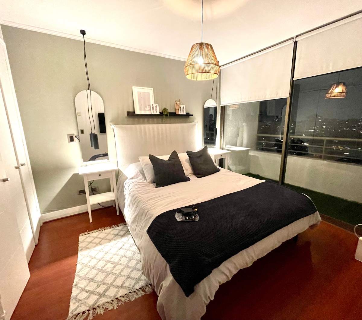 Enjoy a great experience in this save location in Barrio El Golf. Modern and cozy apartment with a privileged location, in the heart of gourmet cuisine and luxury shops of Santiago de Chile "Barrio El Golf". The neighborhood is characterized by its great architectural value and its attractive and varied cultural, gastronomic, and recreational offer. (restaurants, cafes, bars, theaters, museums, design galleries, etc). A few meters away is the metro station ¨Escuela Militar¨ and Plaza Peru.
