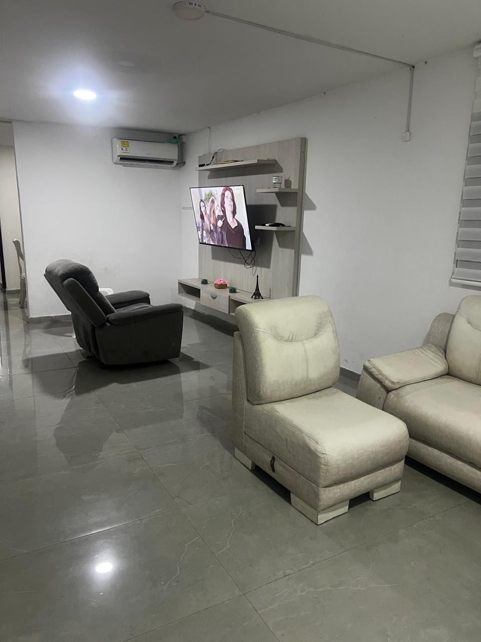 Ideal para grupos👥👥👥🏠 A 5 min de la zona turística: Vía 40 (carnaval), Centro de conv. Puerta de Oro, Malecón (estatua Shakira), Ventana al mundo y Aleta del tiburón, 20 min de las playas, estadio metropolitano • 3 habitaciones con cama doble, closet, aire acondicionado🥶 • 3 baños 🛀 • Hermosa cocina con nevera, utensilios, horno, cafetera, sandwichera🍳 • Sala con TV, muebles cómodos, ventilador • Patio y terraza amplia, area de labores