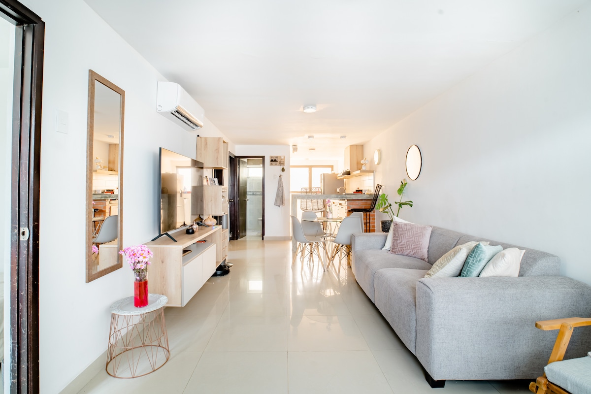 Beautiful apartment in Barranquilla’s northern zone on 46th St (on the exit to Cartagena). It has 2 bedrooms with private bathroom, walk-in closet, Smart TV. 6 beds. Social bathroom, working area, living room with Smart TV and dining table. Fully equipped kitchen as well as washing, drying and ironing stations. PET FRIENDLY with beds and plates for your pets. Homely environment, new, quiet, with modern common areas like gym and pool. You’ll feel quite at home here.