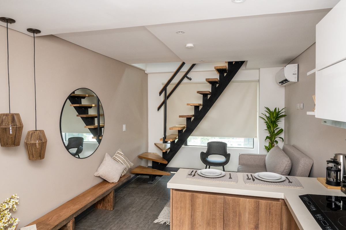 Sumérgete en un dúplex estilo loft moderno y acogedor, donde cada detalle ha sido cuidadosamente diseñado para tu comodidad. Con ubicación estratégica, a minutos de clínicas, el centro comercial Viva y excelentes restaurantes, es perfecto para viajeros, familias o tratamientos médicos. El edificio ofrece piscina, turco, sauna, cafetería y acceso a gimnasio Smart Fit (pago adicional), uniendo descanso, trabajo y bienestar.