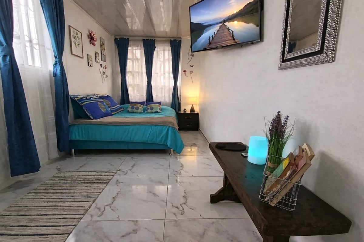 Ubicado 5 minutos 🚶♂️del ✅ C.C. Centro Mayor y 🏫La Escuela de Cadetes General Santander. Ideal para viajes de trabajo, visitas familiares y cita 🩺 en el sur de Bogotá. Espacio cómodo, cocina equipada, lavadora y wifi estable de ✅33 Mbps. 🧭Zona residencial con fácil acceso a 🚇 transporte público. 🔑Check-in autónomo , acceso independiente desde una de las calles del barrio, lo que facilita la llegada, 🚶♂️Aunque la entrada está ubicada a nivel de calle, es completamente privada 🔐