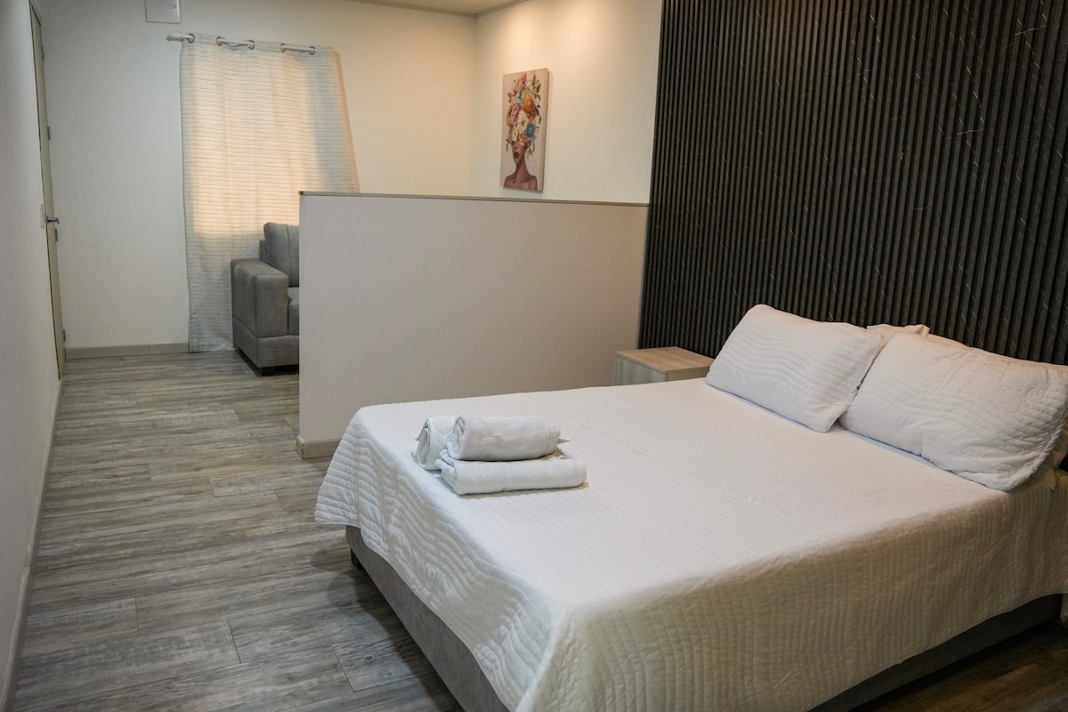 Disfruta de la sencillez de este alojamiento tranquilo y céntrico. Ubicado en el norte de Cali a solo siete minutos caminando del Centro Comercial Chipichape. Lugar tranquilo, amplio y totalmente equipado. Una habitación, baño, cocina, comedor y lugar de trabajo. También tendrás a tu disposición un balcón para tu descanso y relajación. Tendrás cuarto de lavado a tu disposición si costo adicional!