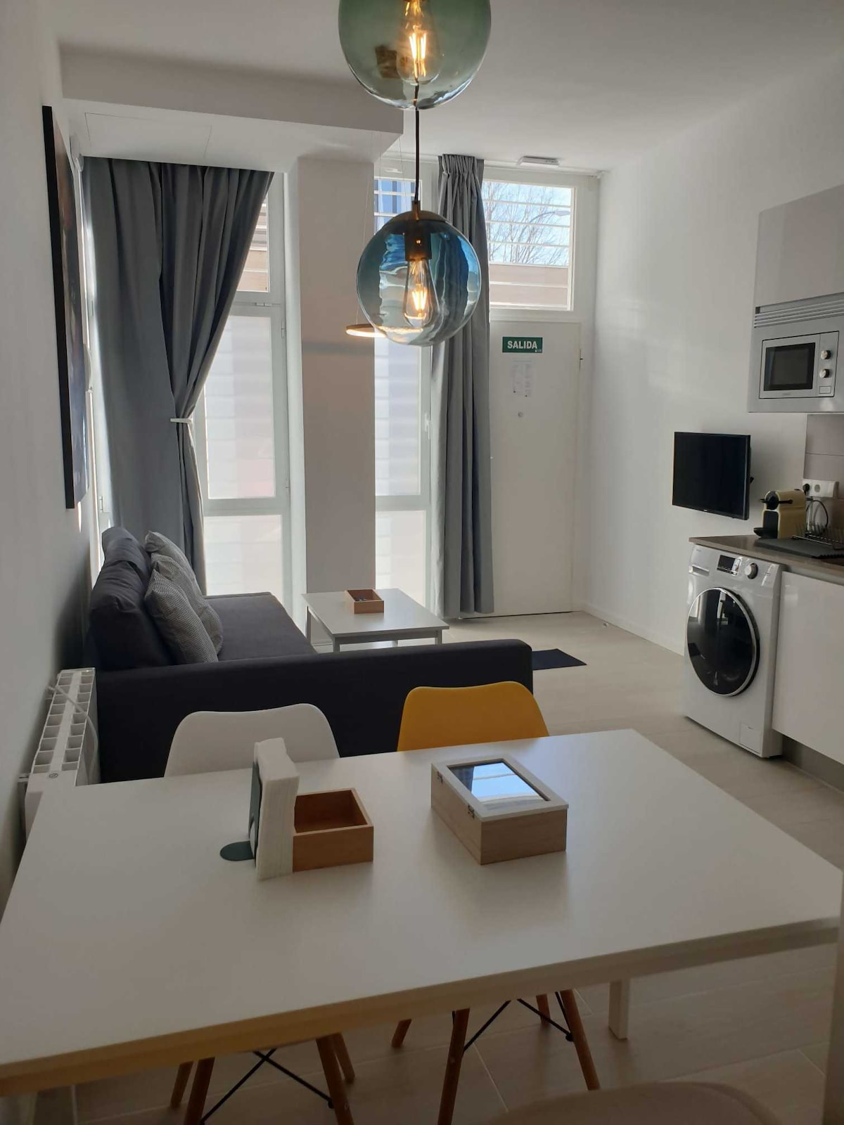 This beautifully designed apartment combines comfort and style, making it ideal for up to 4 guests. The apartment features bedroom, bathroom, a cozy living room with a sofa bed and TV, as well as a fully equipped kitchen and dining table - perfect for a relaxing and comfortable stay. Conveniently located just a short drive from Madrid Airport and only a 5-minute walk from the Planilonio Shopping Mall. It also offers excellent proximity to IFEMA Convention Center and the Metropolitano Stadium.