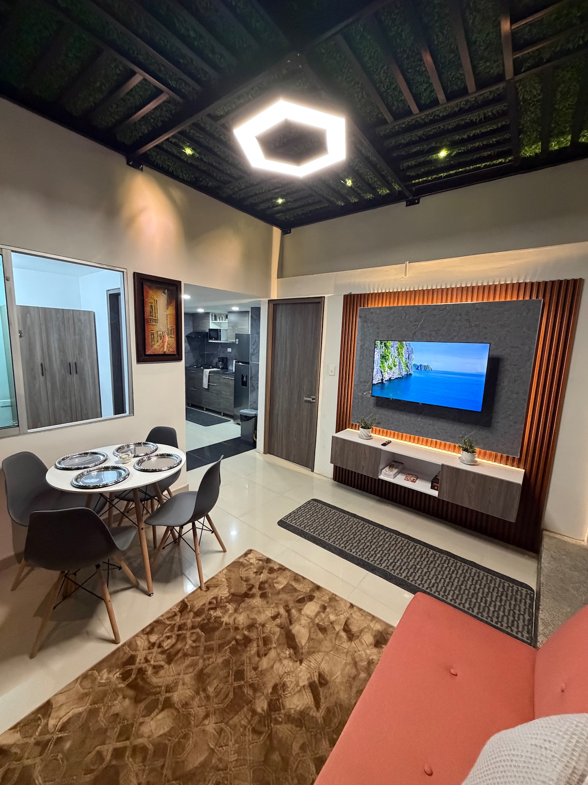 Aparta estudio decorado con estilo y la mejor comodidad para nuestros visitantes. Ubicado en el corazón de modelia, cerca al terminal de transportes, Aeropuerto, supermercados, restaurantes, bancos y la zona rosa. No contamos con elevador. SERVICIOS INCLUIDOS Gym Terraza Área de juegos Desayuno Incluido 7-9am Lunes - Sabado NO Domingos ni festivos. SERVICIOS CON COSTO ADICIONAL Sala de juntas Mini bar 2 parqueaderos cerca, ubicados a 2 cuadras del edificio. No contamos con convenio