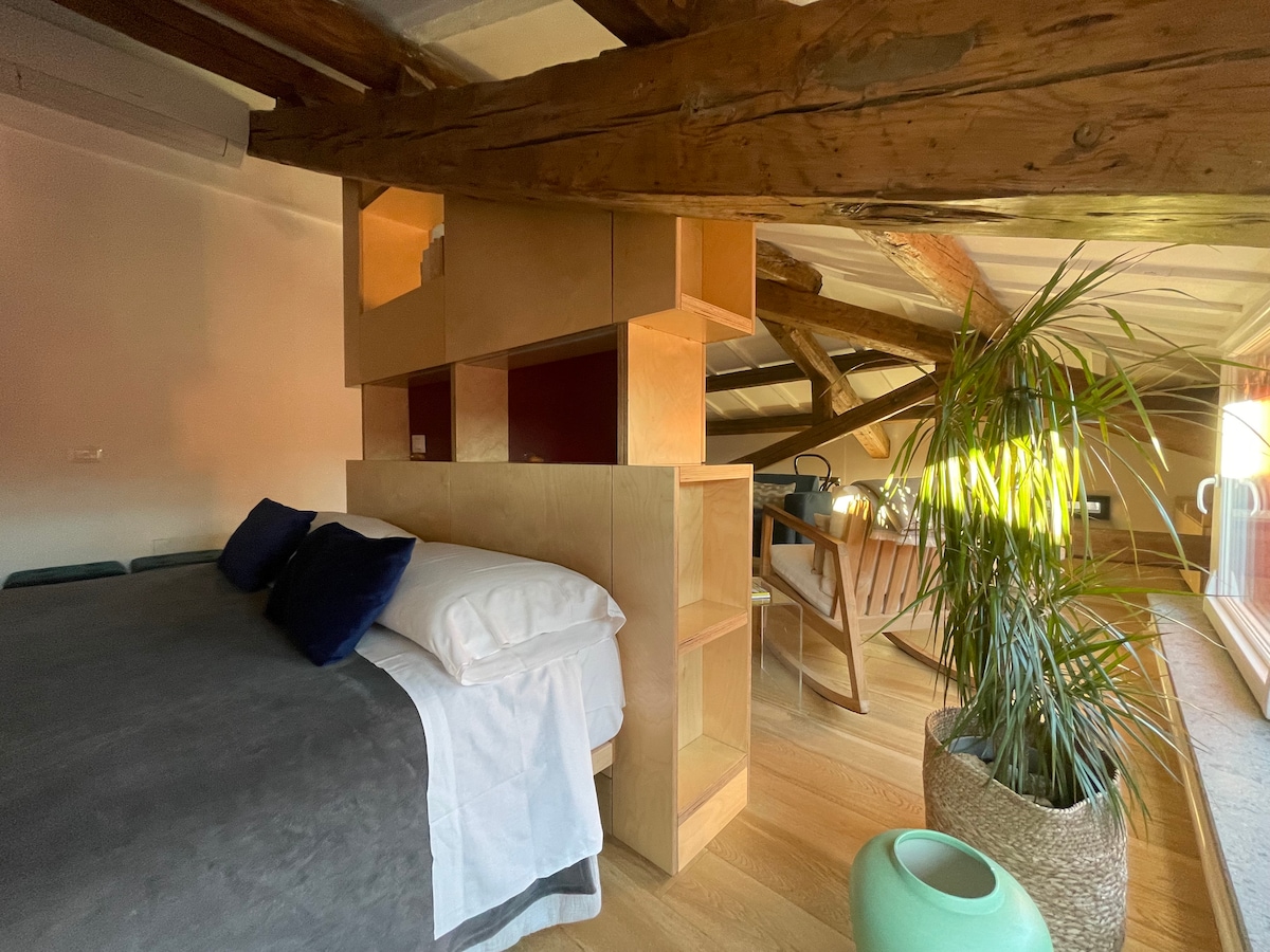 the building, housing this unique loft for 2 persons, dates back to 1926 and was rebuilt in 2009, the apartment in 2019. Refurbished completely with all modern comfort. Bright & warm in winter, cool in summer. PLEASE NOTE this property is located 8 km from the Colosseum, so it is not in the city-centre. It is anyhow easily reachable by bus and underground. You'll find: hairdryer, washer, dishwasher, wi-fi, micro-wave, air-conditioning, private secured car-parking for 1 car