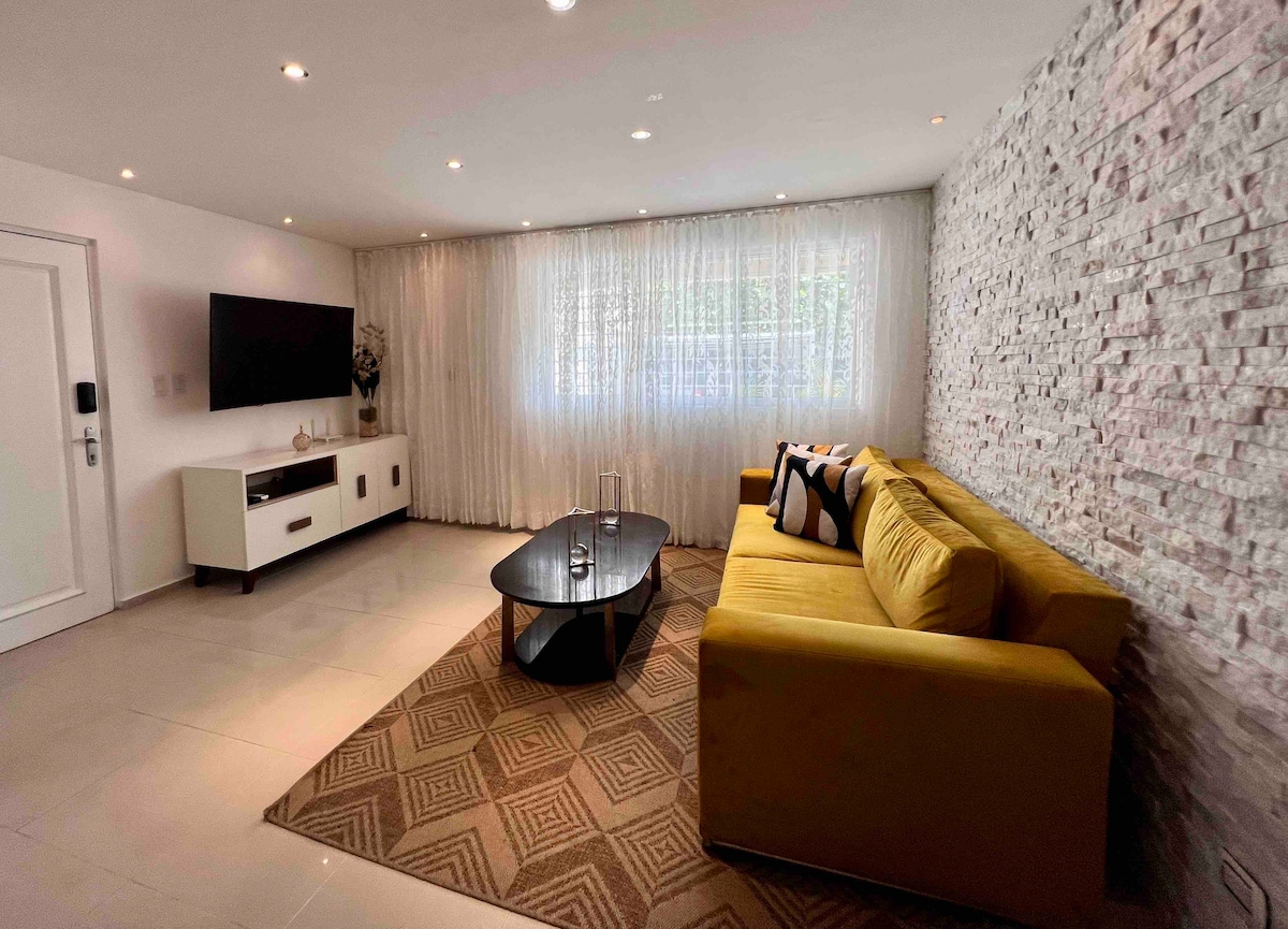 Chic décor, comfortable space, centric location, and clean! And SUPER SPEEDY Internet 300 MBps / 75 . By the way, it's on the 1st floor, and there's Netflix, plus air conditioning on all bedrooms and living room. You're just clicks away from a nice play to stay! (aprox 20-25 min from airport)