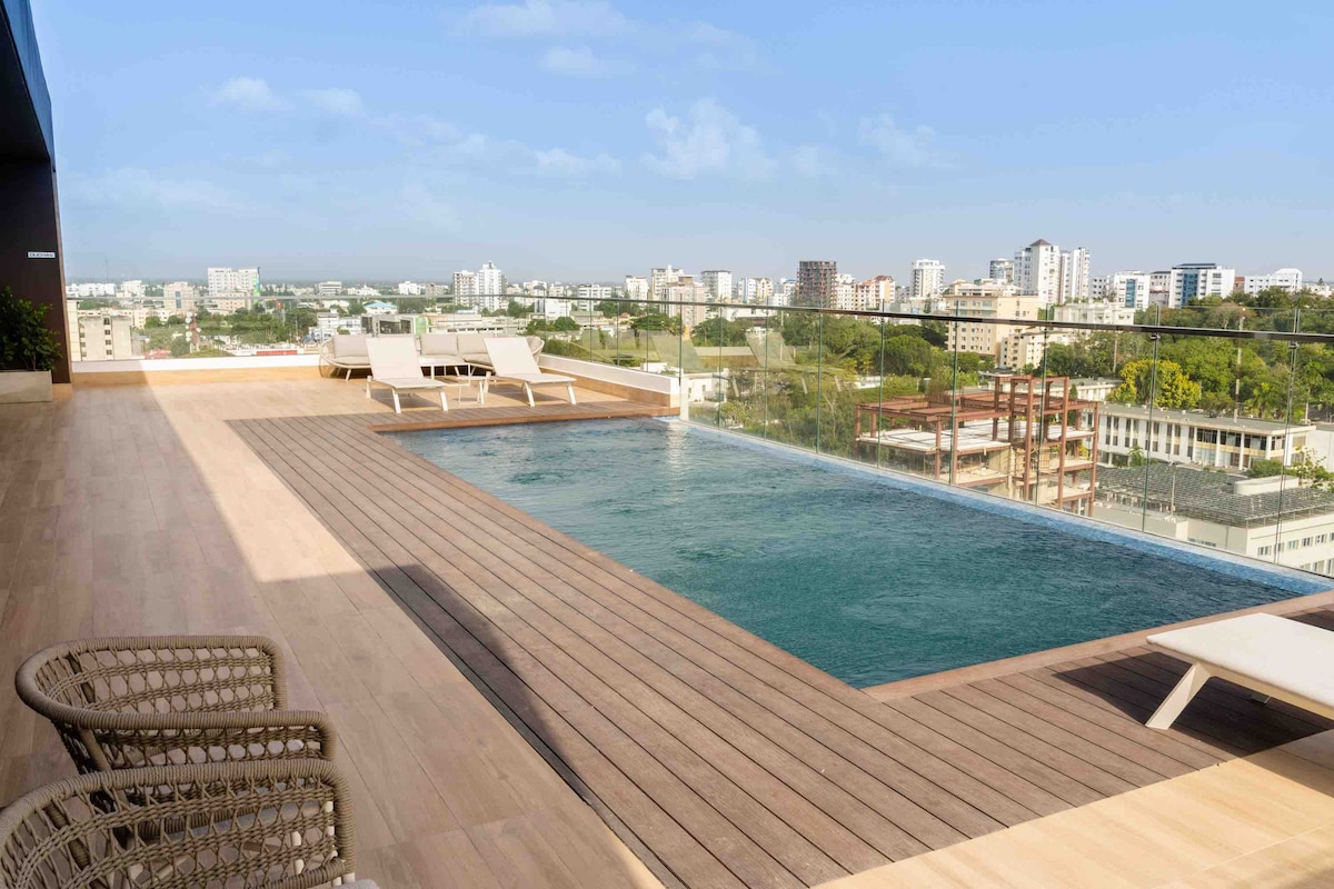 豪华双卧室公寓,带屋顶泳池