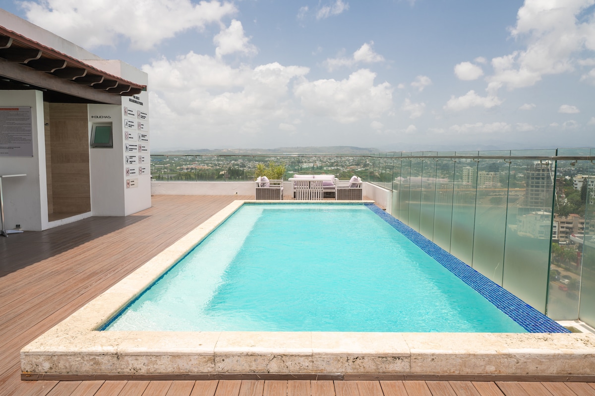 Welcome to our luxurious retreat in the vibrant city of Santiago, Dominican Republic! Located in the heart of Cibao, our modern luxurious apartment offers the perfect blend of comfort and security for your stay. Including a pool, gym, private balcony, private parking, 24/7 on-site security & 5G Wifi. Conveniently located minutes from malls, restaurants, nightclubs, supermarkets, hospitals, and an array of amenities, ensuring easy access to everything you need for a memorable stay!