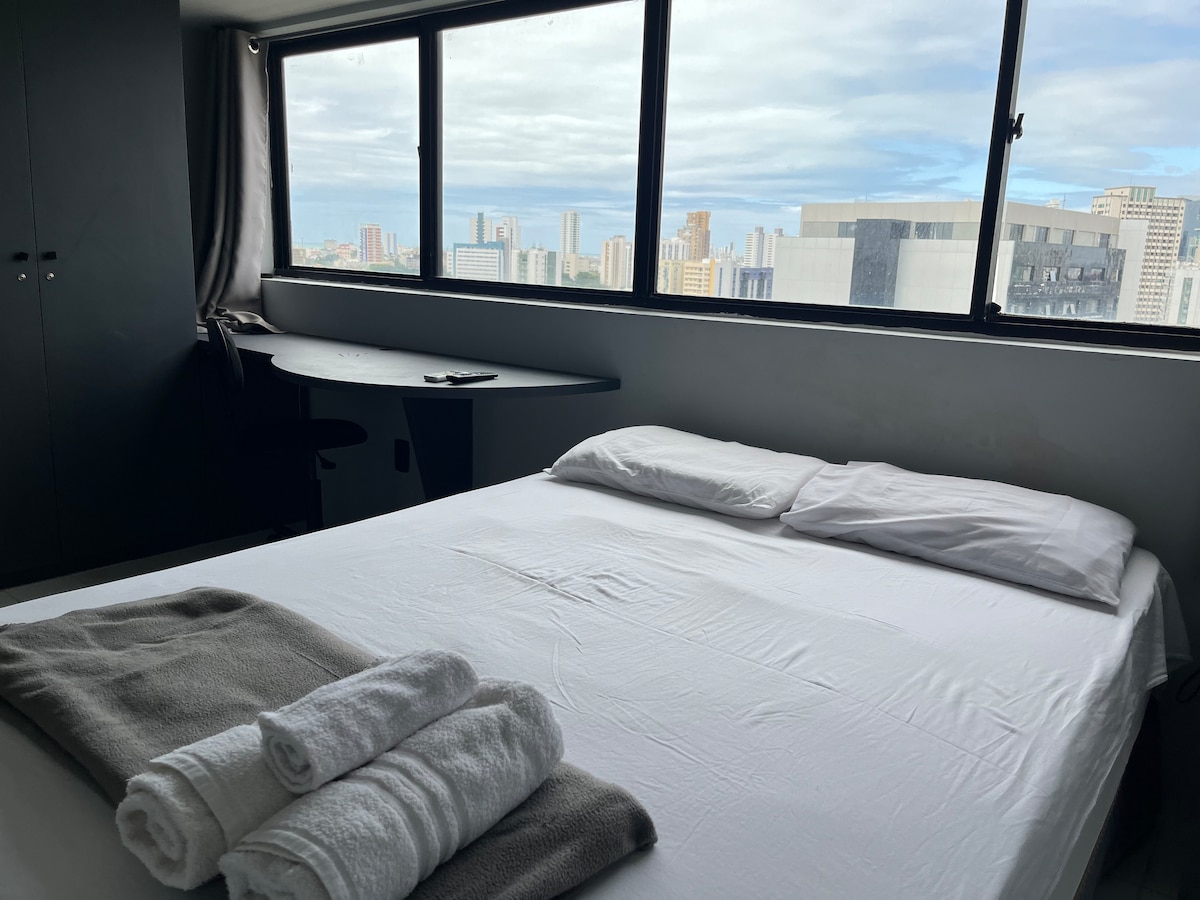 Bem-vindo ao *Studio Exclusivo na Boa Vista*, ideal para quem busca conforto e praticidade no coração do Recife. O flat é moderno, possui cozinha compacta, Wi-Fi, ar-condicionado split, Smart TV, banheiro privativo chuveiro elétrico, cama de casal e sofá cama. Localizado a poucos minutos de pontos turísticos e comerciais, como consulado Americano, Shopping Boa Vista e Shopping Tacaruna, oferece fácil acesso a transporte público. Proibido fumar ou incenso. 🚨PISCINA INTERDITADA NAS SEGUNDA FEIRA