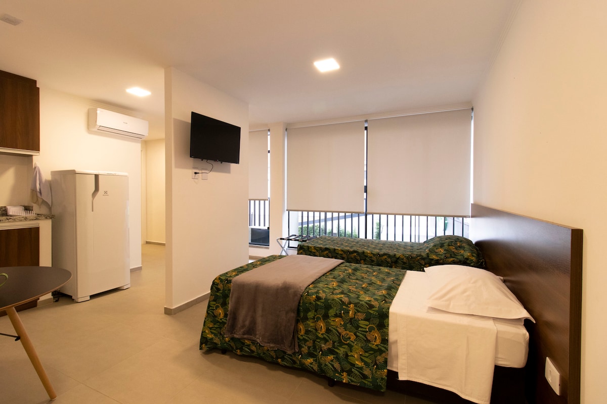 Desfrute de um Estudio, confortável e agradável, com estacionamento incluso e ambiente seguro. Aceitamos pets (com tela de proteção) . Comodidades: • TV • Roupas de cama e banho • Sabonete • Cozinha • Call working • Academia • Piscina • Lavanderia Localização privilegiada !!! • Rodoviária do Tietê: 500 m • Expo Center Norte: 1,9 km • Sambódromo: 1,6 km • 25 de Março: 4 km • Mercado Municipal: 3,5 km • Brás : 3,7 km • Aeroporto de Guarulhos: 22 km • Movida : 100 m