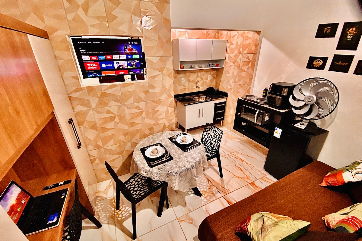 Studio Solaris – Conforto e Praticidade Seja bem-vindo ao Studio Solaris, um espaço moderno, aconchegante e funcional. Equipado com cama confortável, TV de tela plana e uma cozinha prática para suas refeições, o studio oferece tudo o que você precisa para se sentir em casa. Localizado ao lado de supermercado e farmácia e próximo do centro de convenções, bar, pizzaria, além de estar a apenas a 5 min (2,8 km) do Salvador Shopping. Um cantinho especial planejado com carinho para sua estadia!