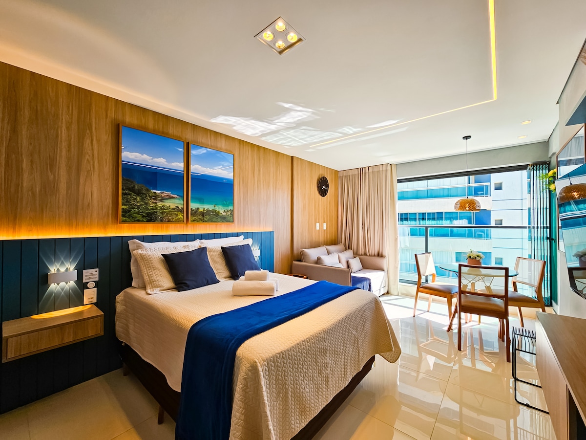O Apartamento Loft Studio oferece um ambiente moderno e aconchegante, ideal para quem busca conforto e praticidade. Localizado a apenas 600m do Centro de Convenções e a poucos passos da praia, une lazer e conveniência. O espaço conta com design sofisticado, segurança 24h, áreas comuns elegantes e fácil acesso a transportes, shoppings, restaurantes e universidades. Perfeito para profissionais em viagem, jovens estudantes e quem deseja viver Salvador com estilo.”