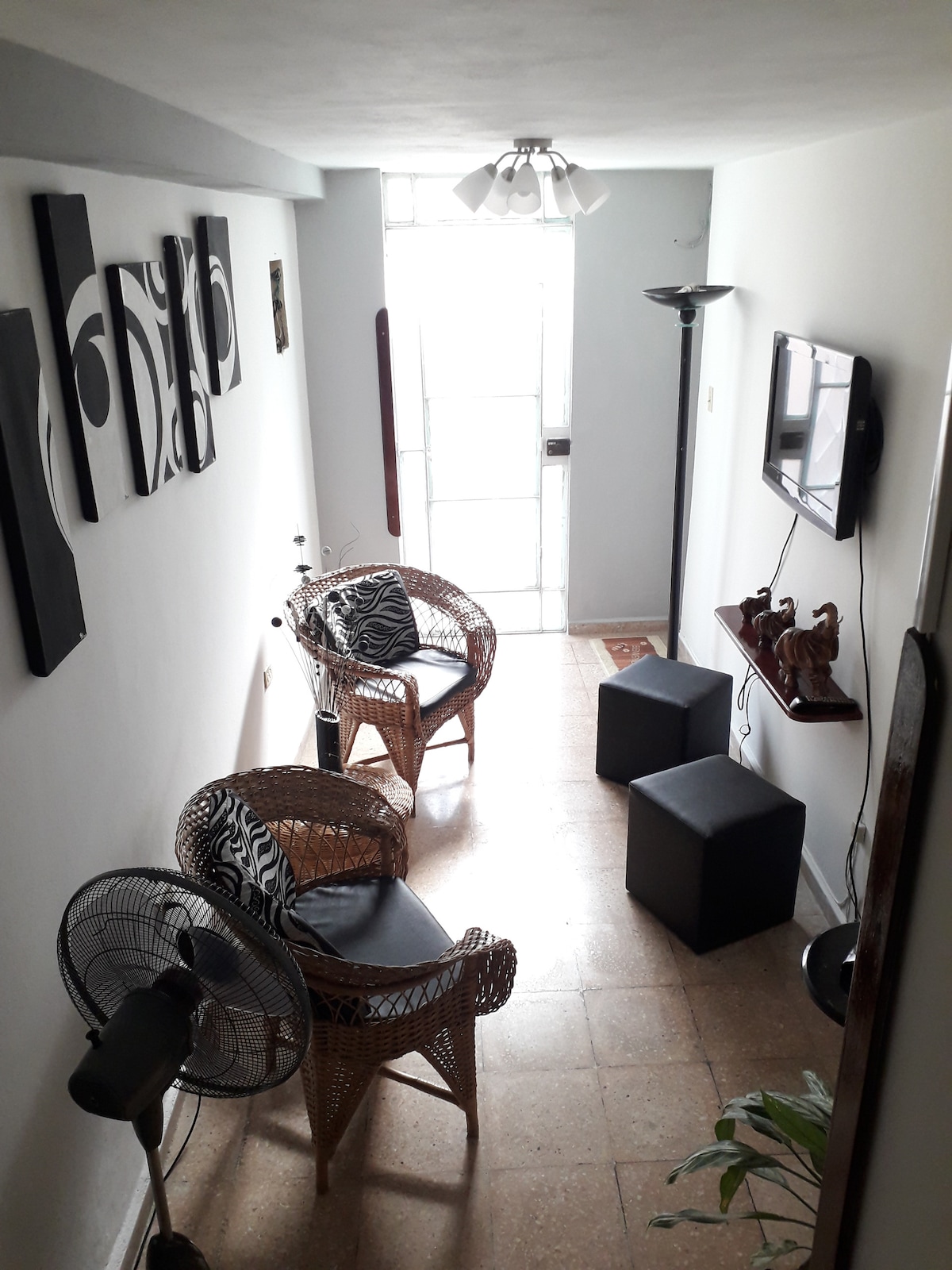 El apartamento está conformado por sala comedor,un dormitorio,cocina y baño.Una cama camera y una cama individual para niño. El niño tiene que formar parte de la reservación. Es totalmente independiente y con el confort necesario,agua fría y caliente,climatizado. Hasta el apartamento hay tres tramos de escalera.Esta ubicado a solo dos cuadras y media del Capitolio Nacional y a 100 metros de los puntos de salida de taxis y bus. Rara vez se presentan afectaciones del fluido eléctrico.