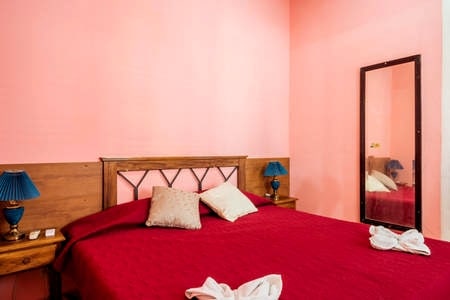 En el 1er piso del mismo edificio, dos apartamentos independientes. El 1er Apto. con balcón, sala-comedor, cocina, baño, patiecito y 2 habitaciones: una con cama matrimonial y otra con 2 camas personales. El 2do Apto. tiene sala-cocina, comedor pequeño con una cama individual, una habitación con cama matrimonial y baño, además de un pequeño patiecito. Los 2 apartamentos tienen Split, ventiladores, agua fría y caliente, WIFI y teléfono. En una muy zona céntrica.