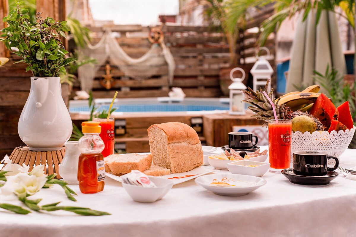 Our accommodation is located in the heart of Havana, being an authentic colonial structure created in 1883 giving the same of a total of 5 rooms and a large terrace decorated with natural plants and connected with two rooms for the enjoyment of guests where they can rest with total tranquility and have at their disposal everything necessary for a pleasant and pleasant stay