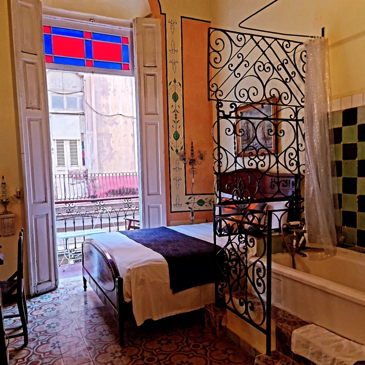 Welcome to to the Princess Consuela Bedroom in Casa Pompei ! This stylish boutique hotel is located in the center of Havana. You're within walking distance of every important landmark in the city! It is only 20 minutes from the airport and we arrange classic car pick-ups for our guests! Every room has private terraces, a rooftop with 360 views, on-site laundry service, and a kitchen & dining room to enjoy your coffee in the middle of Havana! We look forward to welcoming your stay here!