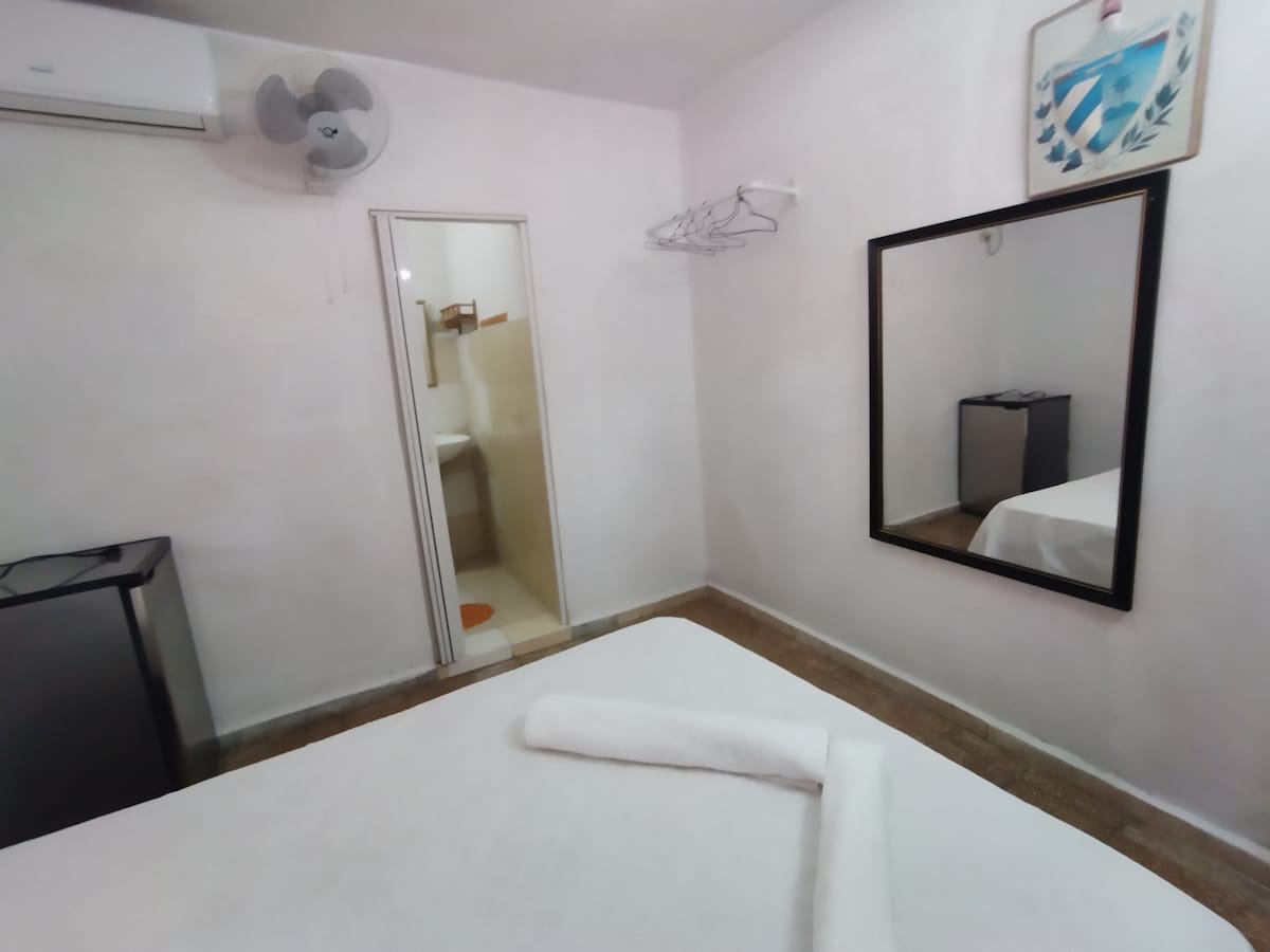 Modern, air-conditioned, comfortable, independent and central , close to the most important tourist places in the city, surrounded by the most populous restaurants and shopping centers, it has 24-hour wi-fi (payment by card), cold water and hot, telephone, HD TV, refrigerator, air conditioning (split), , hair dryer, with paid washing service y with transportation service; presents all the accessories and appliances to prepare your food
