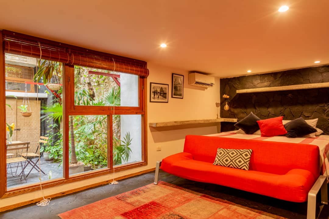 Our bright Junior Suite showcases the eclectic architecture of the 1920's and the charm of an artistically restored building. Located on the 2nd floor, our spacious Junior has a living room, three private balconies, cozy queen bed, private bathroom, original tiles Cubans, collected period objects and works of art originals. Our Rooftop and terraces welcome people but also offer a moment to slow down and meditate