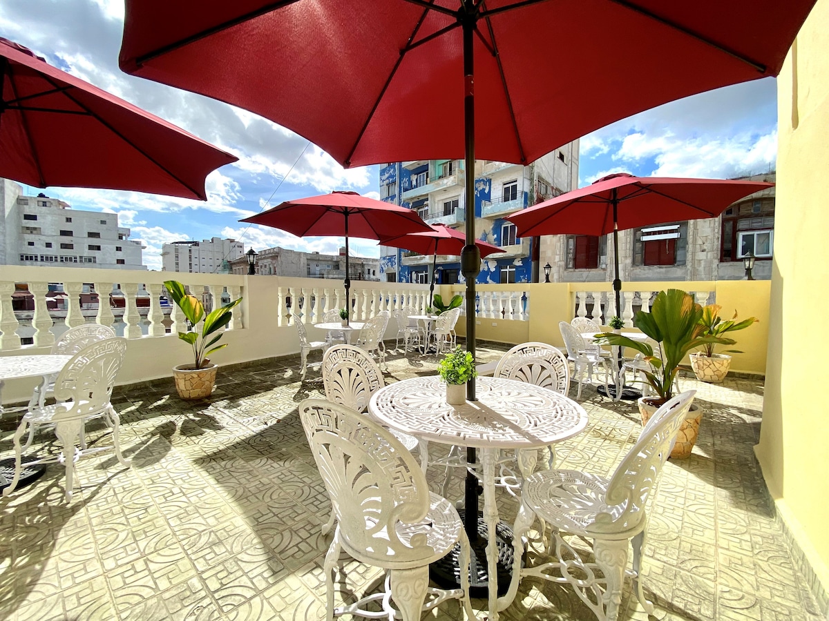 Discover luxury in Old Havana at our 5-star boutique hotel. With five exquisite rooms boasting king-size beds and deluxe en-suite bathrooms, comfort awaits discerning travelers. Relax on our breathtaking rooftop terrace with panoramic city views and impeccable bar service. Our 24/7 reception ensures seamless service and security for a memorable stay. Experience Cuban indulgence at its finest with us.