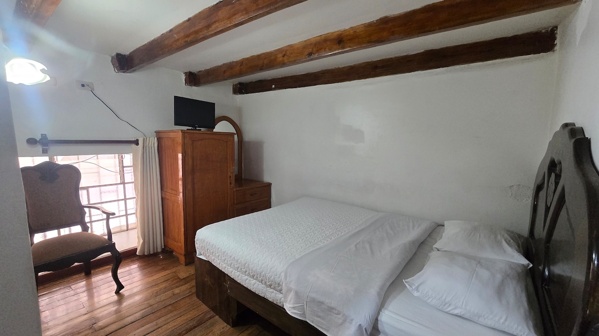 Hermosa habitación en “CASA CRISTOBAL Siete Cuartones CASONA COLONIAL” Hotel Boutique, estamos a 2 cuadras de la plaza de armas, cerca de todo. La habitación cuenta CON BAÑO COMPARTIDO con agua muy caliente las 24 horas (10 m2), internet de alta velocidad, Smart TV con Netflix y Disney +, atención las 24 horas, limpieza y cambio de toallas diaria. - Almacén de equipaje GRATUITO - NO INCLUYE DESAYUNO Lugar silencioso y tranquilo. Contamos con una cafetería EULALIO CAFE con una carta diversa.
