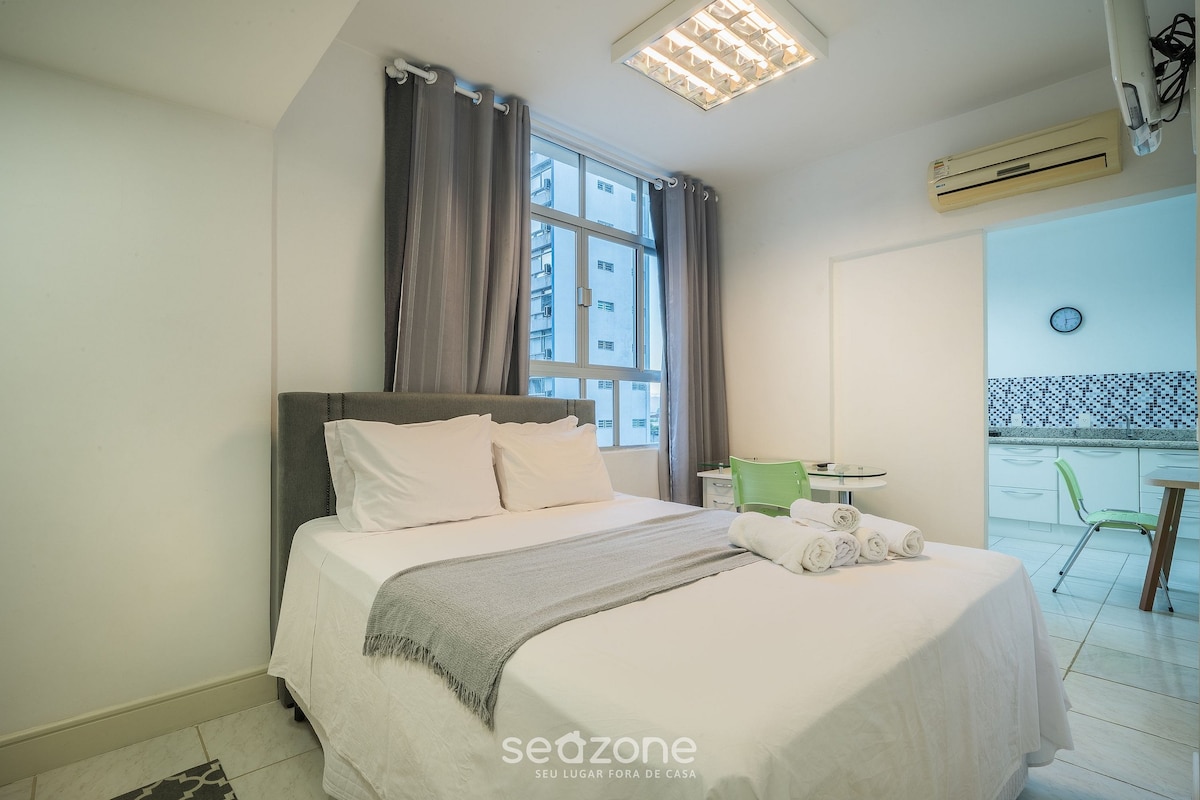 Stay in the heart of Floripa: a modern studio 290m from the Public Market and 500m from Fernando Machado Square! Experience the convenience of being close to the main tourist and gastronomic spots in the capital. This studio offers the comfort of a queen bed and the technology of a Smart TV, as well as a fully air-conditioned environment. Book now and guarantee the practicality of exploring the Historic Center on foot!