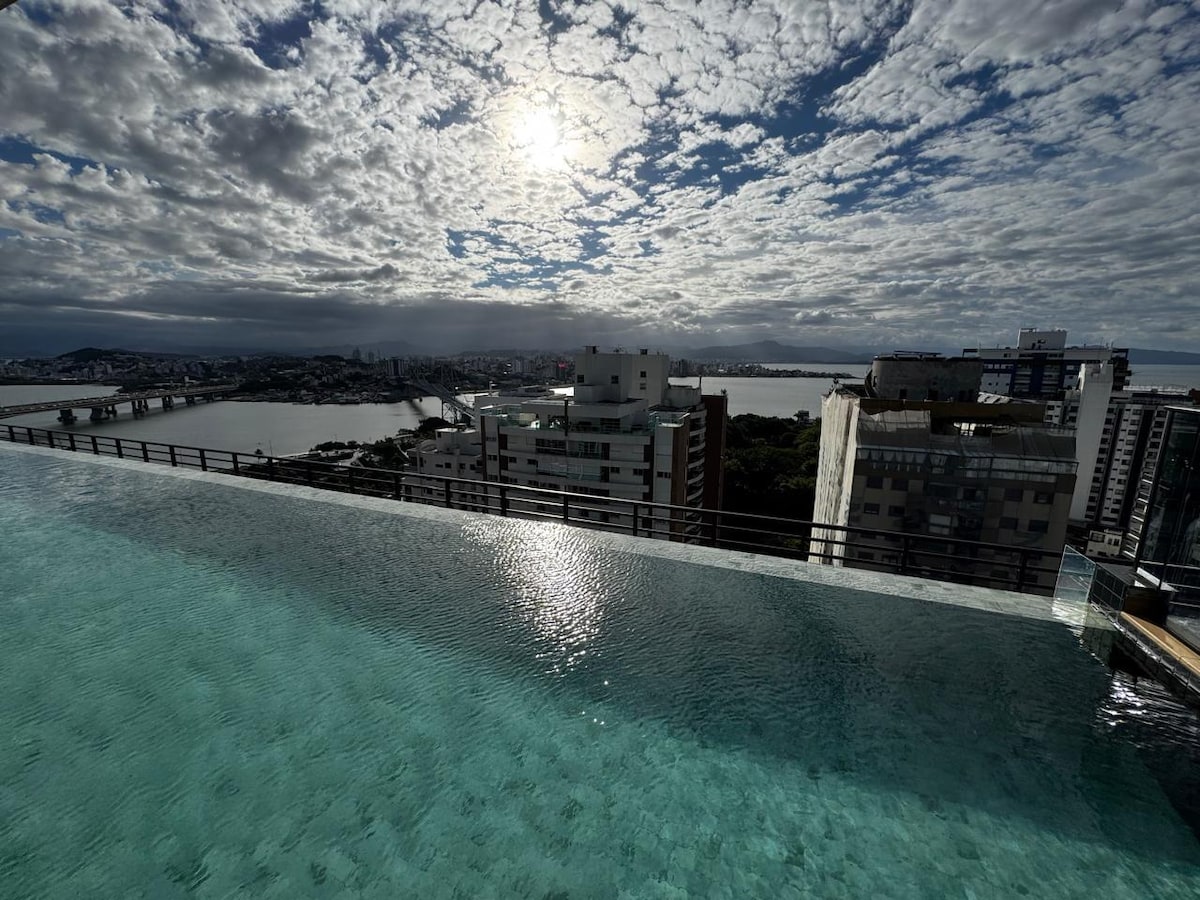 Sua estadia alto padrão no Centro de Florianópolis com vista para o mar. O apartamento foi totalmente decorado e mobiliado para que os hóspedes sintam-se em casa, podendo desfrutar de uma estadia com muito requinte e sofisticação em um espaço completo de 68 m². Localizado em um dos melhores condomínios clube da cidade, você poderá desfrutar de diversas facilidades como piscina, academia, squash, sala de jogos, tudo 24 horas. Surpreenda-se!