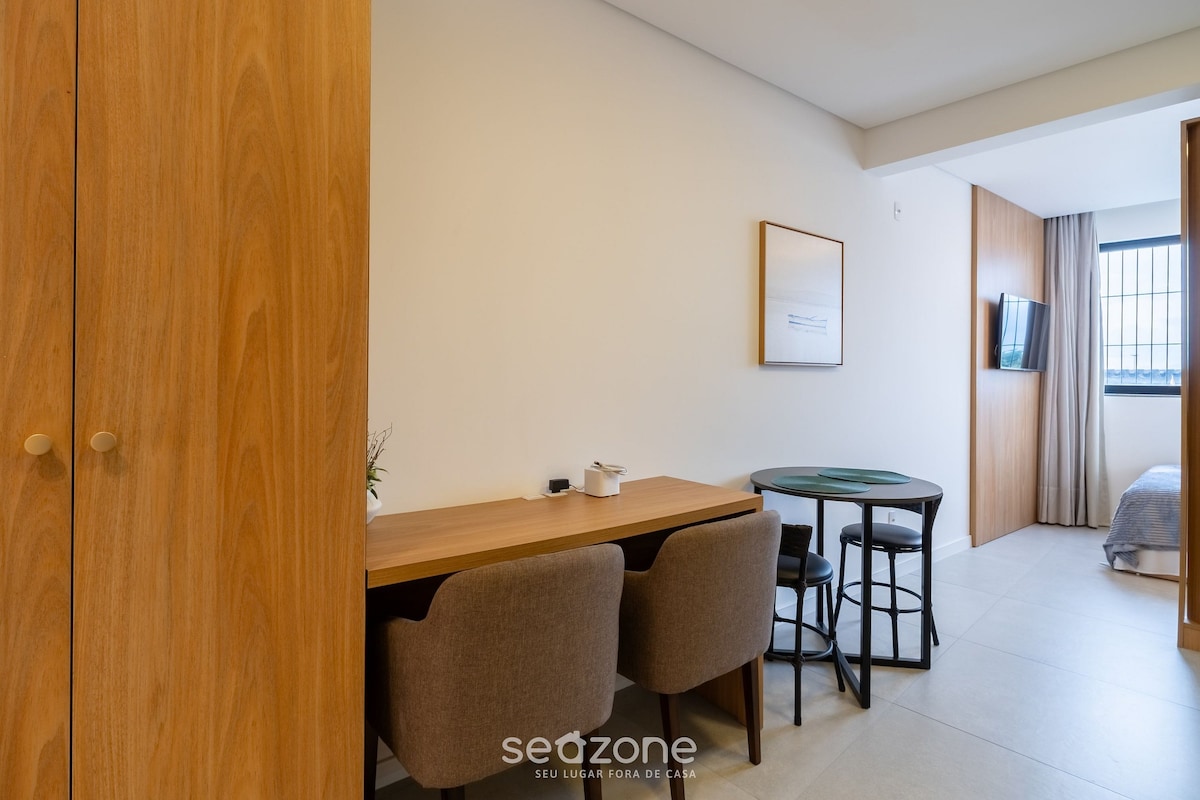 Looking for a cozy checkpoint in the heart of the city? You'll feel at home in this well-planned loft. Located in downtown Florianopolis, it's perfect for someone looking to explore the island or attend to an event nearby. Includes: - Queen bed - Complete gourmet kitchen - Washer and drier - Big table for meals and Home Office - 360 Rotational TV so you can watch from anywhere in the loft - Clean and modern bathroom - Wi-fi - Complete air conditioning