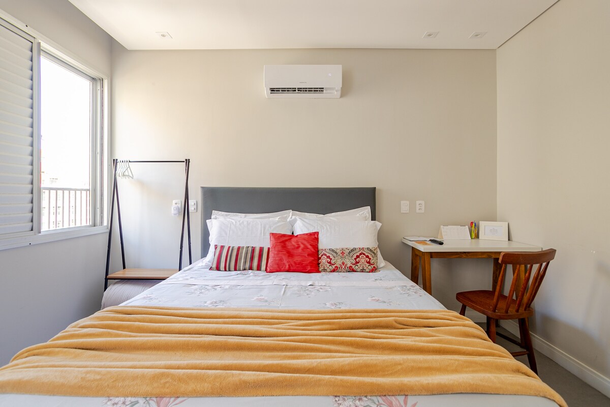 Looking for a cozy checkpoint in the heart of the city? You'll feel at home in this well-planned loft. Located in downtown Florianopolis, it's perfect for someone looking to explore the island or attend to an event nearby. Includes: - Queen bed - Complete gourmet kitchen - Washer and drier - Big table for meals and Home Office - 360 Rotational TV so you can watch from anywhere in the loft - Clean and modern bathroom - Wi-fi - Complete air conditioning