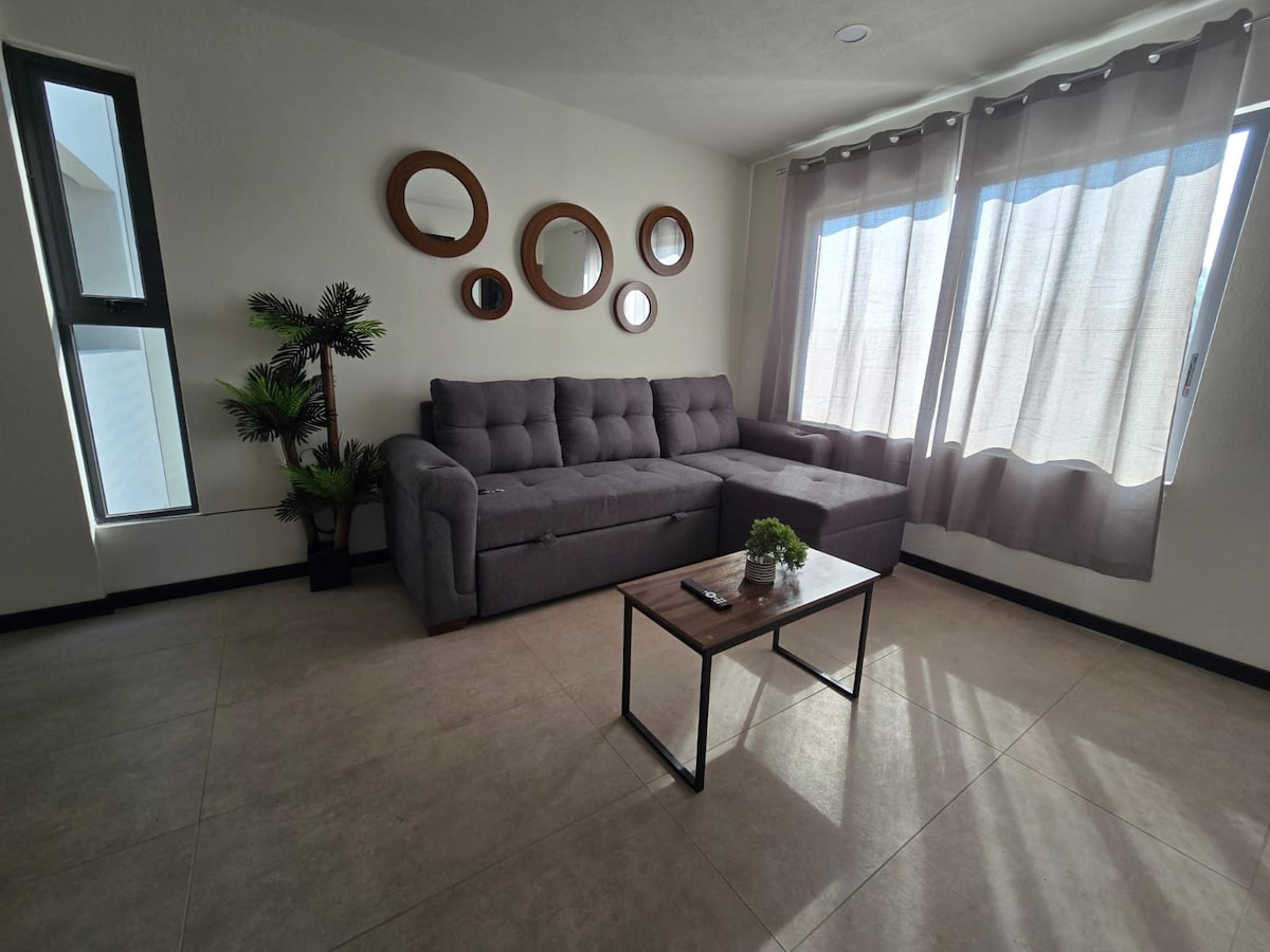 Relájate en esta escapada única y tranquila. Vienes de paseo o de trabajo?? esta opción es para ti. Loft con todas las comodidades para pasar una estancia increíble. En una zona exclusiva donde tienes las mejores vialidades y acceso a cualquier punto de la ciudad. El departamento esta totalmente equipado, cuenta con una cama matrimonial y un sofa cama individual, un escritorio de trabajo, wifi, cocina totalmente equipada, áreas de esparcimiento y estacionamiento exclusivo para un automóvil.